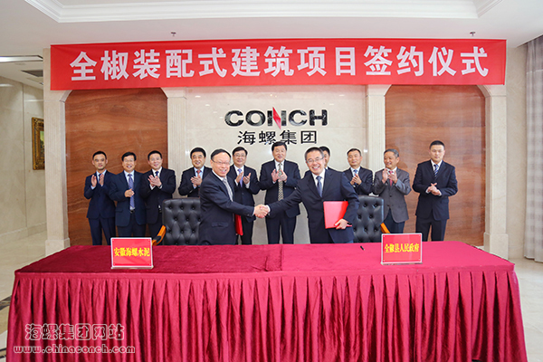 2019年5月24日,海螺水泥與全椒縣人民政府在海螺集團總部簽署了裝配式建筑項目合作協(xié)議。海螺集團黨委書記、董事長高登榜,集團公司副總經(jīng)理、海螺水泥副董事長王建超,海螺水泥總經(jīng)理吳斌、副總經(jīng)理柯秋璧,全椒縣委書記朱大綱、縣長楊光、副縣長闞緒瑞等出席并見證簽約儀式。吳斌、楊光代表雙方簽署協(xié)議。 簽約前,雙方在2308會議室進行了座談交流。 .jpg)