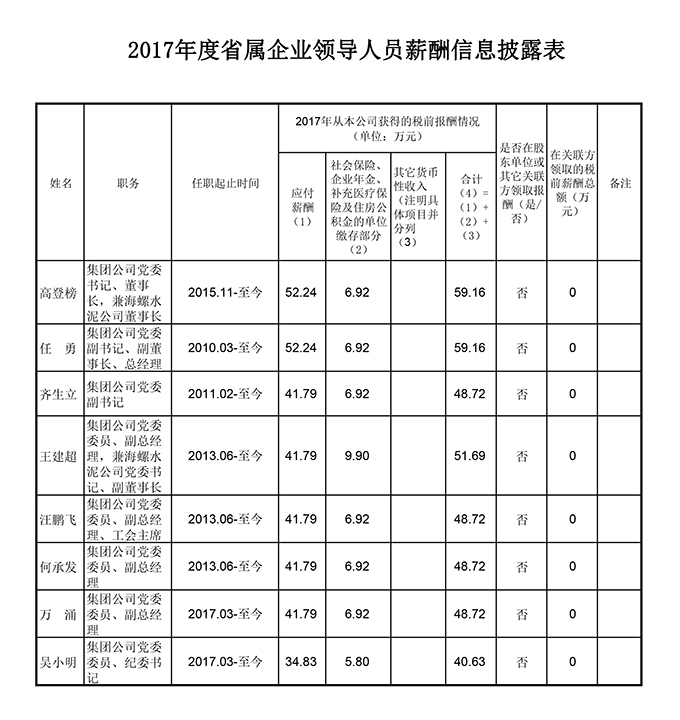 2017年度省屬企業(yè)領(lǐng)導(dǎo)人員薪酬信息披露