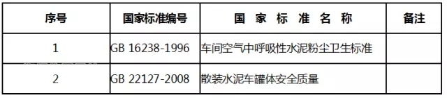 近期,國家質(zhì)檢總局和國家標準委同時發(fā)布了2017年第6號公告,廢止了GB 16238-1996《車間空氣中呼吸性水泥粉塵衛(wèi)生標準》和GB 22127-2008《散裝水泥車罐體安全質(zhì)量》兩項標準。