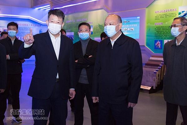 隨后,李建中一行來到海螺集團(tuán)展廳,參觀了解了海螺集團(tuán)發(fā)展歷程、產(chǎn)業(yè)布局和科技創(chuàng)新等情況。王誠介紹,海螺集團(tuán)堅(jiān)持創(chuàng)新引領(lǐng)、數(shù)智賦能、綠色發(fā)展,實(shí)施“殲30”創(chuàng)新發(fā)展行動(dòng)計(jì)劃,打造雙跨工業(yè)互聯(lián)網(wǎng)平臺(tái),加大研發(fā)投入,加快招引創(chuàng)新人才和創(chuàng)新團(tuán)隊(duì),全力推進(jìn)雙招雙引,積極發(fā)展新材料、新能源等新興產(chǎn)業(yè),構(gòu)建全生命周期的高端化、數(shù)字化、綠色化產(chǎn)業(yè)生態(tài)圈,做強(qiáng)做優(yōu)做大主導(dǎo)產(chǎn)業(yè),做長做寬做高產(chǎn)業(yè)鏈條,推動(dòng)企業(yè)加速向高新技術(shù)企業(yè)轉(zhuǎn)變、產(chǎn)業(yè)加速向戰(zhàn)略性新興產(chǎn)業(yè)轉(zhuǎn)型、管理加速向世界一流轉(zhuǎn)軌。