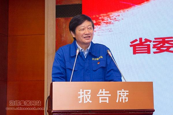 海螺集團(tuán)黨委書記、董事長(zhǎng)高登榜主持會(huì)議并作表態(tài)發(fā)言