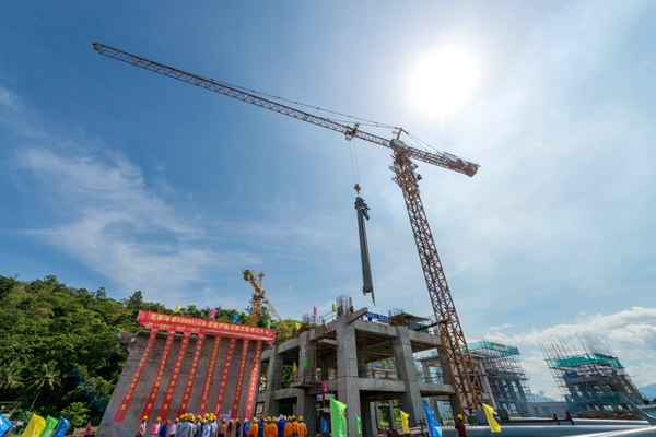 2016年11月26日,印尼北蘇海螺項目現(xiàn)場,海闊天高、晴空萬里、彩旗飄揚、安裝塔吊高聳入云,伴隨著喜慶的鞭炮聲,窯尾框架第一根立柱吊裝順利完成,標志著北蘇海螺5000t/d水泥熟料生產線安裝工程正式啟動,項目進入設備安裝階段。