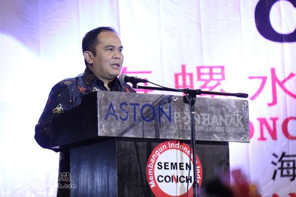 ??? 現(xiàn)場(chǎng)展示過(guò)后,贊助本次推介會(huì)的西加BNI銀行負(fù)責(zé)人Haryanto致辭,他對(duì)海螺水泥在印尼的發(fā)展和推動(dòng)當(dāng)?shù)鼗A(chǔ)設(shè)施建設(shè)給予了贊揚(yáng),表示希望能與海螺進(jìn)一步合作,共同建設(shè)美好印尼。
