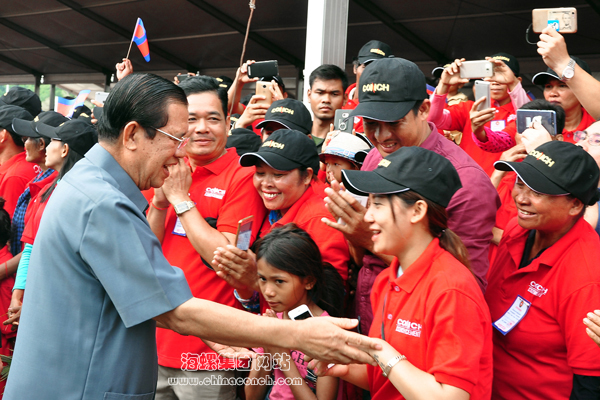 剪彩合影結(jié)束后,洪森首相及夫人到達(dá)儀式廣場(chǎng),對(duì)公司員工和縣鄉(xiāng)人民群眾進(jìn)行了親切慰問(wèn)。