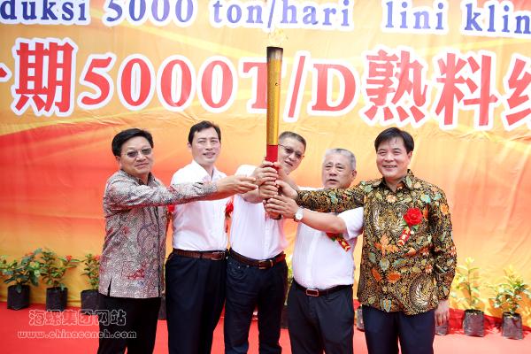 9時28分,點(diǎn)火儀式在窯廣場正式開始。海螺水泥副總經(jīng)理李曉波、湖南區(qū)域主任何廣元、印尼區(qū)域副主任俞越、安全生產(chǎn)環(huán)保部常務(wù)副部長章嗣福,合作方和建設(shè)施工單位負(fù)責(zé)人,以及調(diào)試專家組成員、幫扶人員、各參建單位代表及北蘇海螺全體員工共500余人參加了點(diǎn)火儀式。