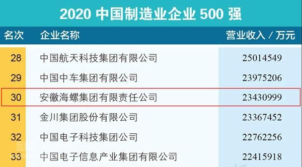 海螺集團連續(xù)16年入圍中國企業(yè)500強,榮列2020中國企業(yè)500強第92位,較2019年上升了13位,首次邁進前100強,也終結(jié)了安徽省多年無企業(yè)進入前100位的歷史;同時,榮列2020中國制造業(yè)企業(yè)500強第30位,比2019年上升8位;榮列2020中國跨國公司100大第96位,比2019年上升2位。